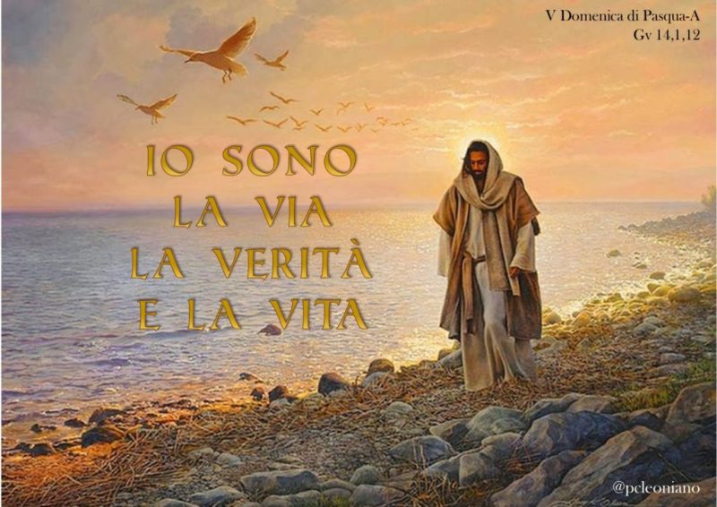 Il Vangelo della quinta domenica di Pasqua riporta una parte del discorso di Gesù durante l’ultima cena, è un addio nel quale, rispondendo alle domande dei discepoli, lascia il suo testamento. Prima rassicura con “Non sia turbato il vostro cuore”, dove cuore non è la sede degli affetti come intendiamo oggi, ma nel linguaggio biblico è il luogo dell’intelligenza, della volontà, del pensiero, quindi è un invito a riflettere. Poi aggiunge: “Io sono la via, la verità e la vita”. Sono la VIA: seguendo la via d’amore tracciata da Gesù possiamo raggiungere Dio. Sono la VERITÀ: quando scopriamo il Suo vero volto conosciamo anche noi stessi, il nostro posto nell’Universo, ci vediamo come Dio ci vede. Sono la VITA: donando la sua, Gesù non solo ci ha permesso di esistere, fare esperienze, amare, costruire, ma soprattutto ci fa desiderare la vita eterna. Gesù ci offre consolazione, ci guida e rivela anche l’annuncio di Pentecoste, quando nello Spirito Santo si fa dono, promessa, compimento. Ed è quello che desideriamo tutti: avere delle risposte quando le domande affollano i nostri pensieri; sapere dove andare quando i passi si fanno incerti; sperare quando non si ha più fiducia nel futuro.